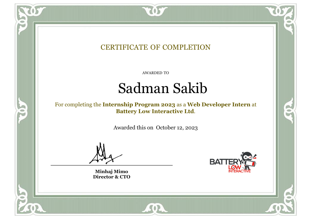 As I stand at the threshold of completing my internship at Peacify (Subsidiary Branch of Battery Low Interactive), I find myself overwhelmed with gratitude and a deep sense of appreciation. This journey has been a profound learning experience, and it wouldn't have been the same without the support, guidance, and warmth of so many individuals.